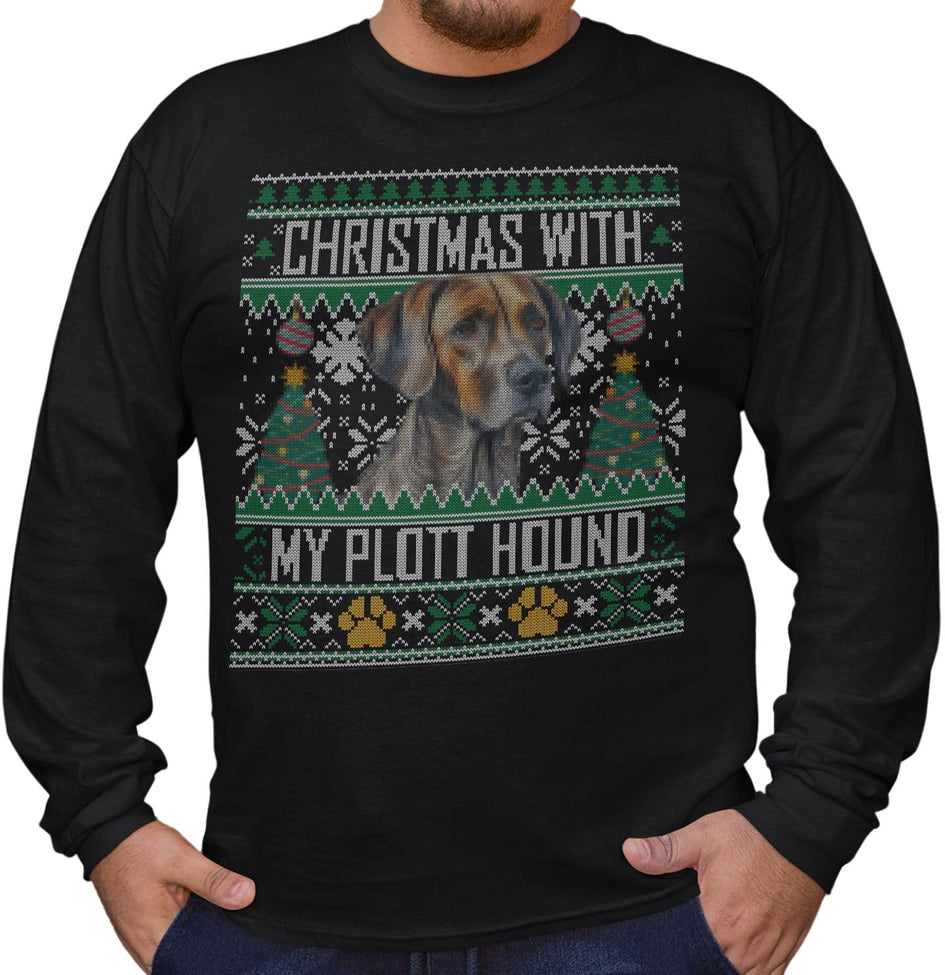 Ugly Christmas Sweater with My Plott Hound - Adult Unisex Long Sleeve T-Shirt