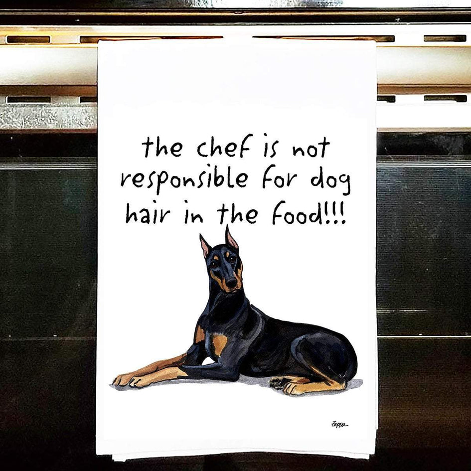Trade in your ordinary tea and hand towels for this breed specific dish towel! The cloth features a witty chef-themed saying printed above your dog of choice. Best of all, it's machine washable!