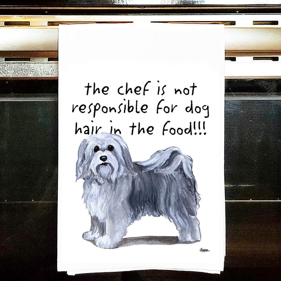 Trade in your ordinary tea and hand towels for this breed specific dish towel! The cloth features a witty chef-themed saying printed above your dog of choice. Best of all, it's machine washable!