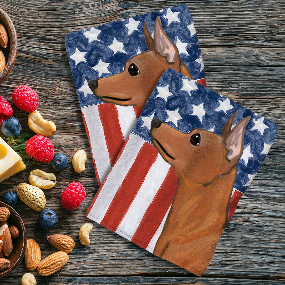 This small Virginia studio is known for their original decor items and home goods, each artistically rendered to display your favorite dog breed. These 2-Piece 16" W x 25" H Kitchen Towel Sets display your breed of choice against an American Flag background.