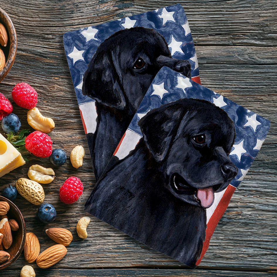 This small Virginia studio is known for their original decor items and home goods, each artistically rendered to display your favorite dog breed. These 2-Piece 16" W x 25" H Kitchen Towel Sets display your breed of choice against an American Flag background.